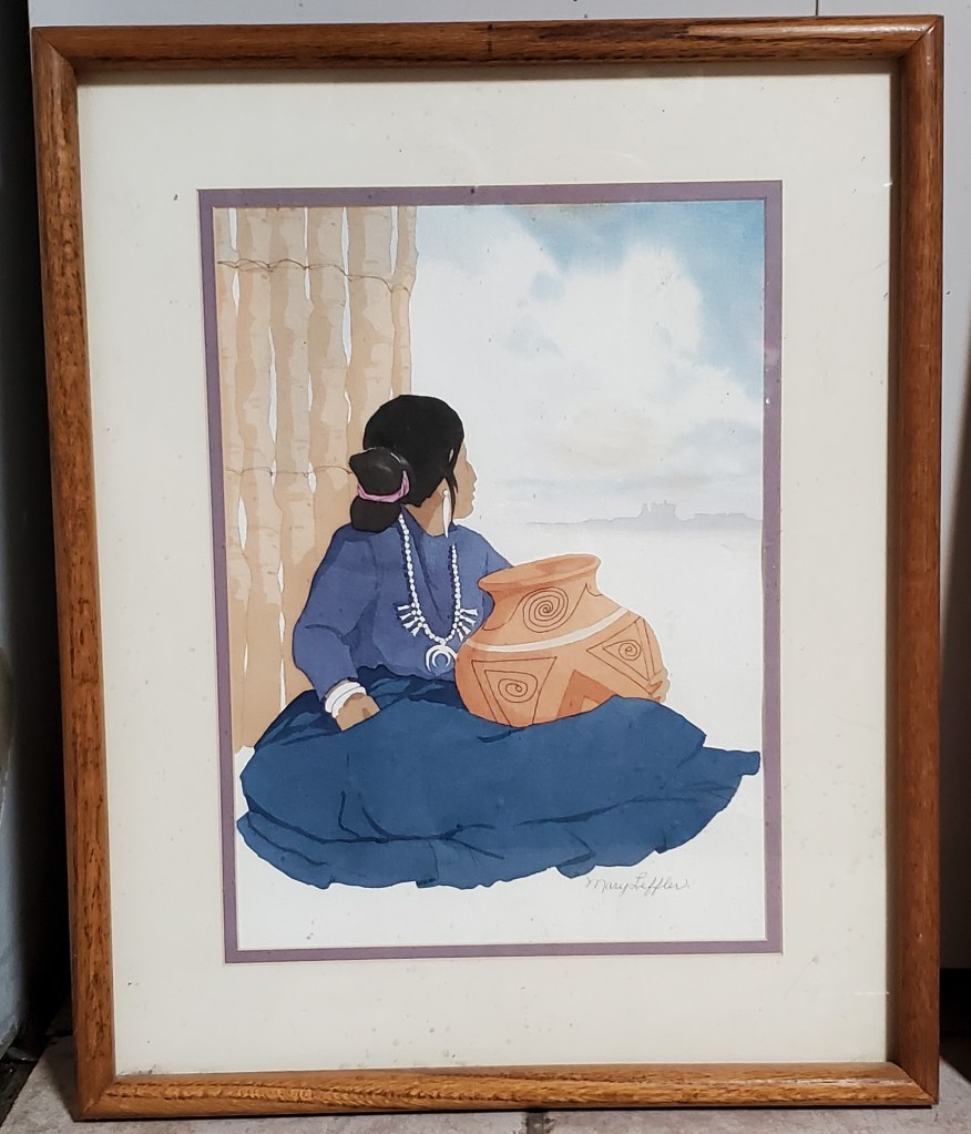 “Navajo Potter” by Mary Leffler, Signed “Navajo Potter” by Mary Leffler, Signed 17 x 21 Light Brown Frame