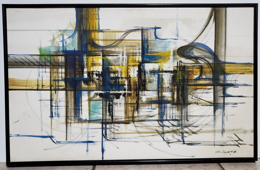 Original Painting – Lines with many colors by C. Kuntz, Signed