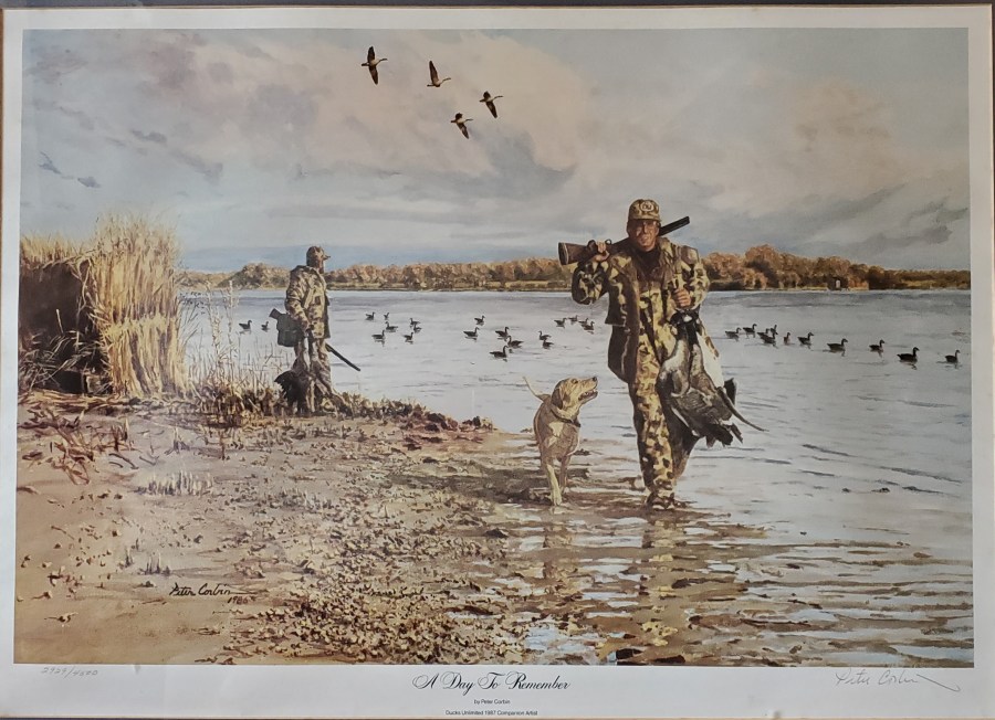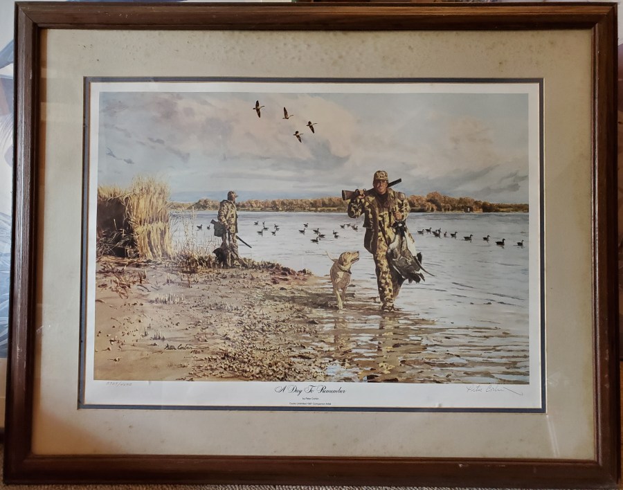 A Day to Remember by Peter Corbin, Signed Framed. Signed by artist Peter Corbin. Numbered 2929/4500. 34″ W x 27″ H. Asking $100 Price is for local pick-up only. Shipping is extra and will be figured upon request. See below for contact details. Click here to return to where you were on the “Items for Sale” page. Clicking the back button will put you at the top of the page, while Clicking this button will return you to where you left off. Share this: Click to email a link to a friend (Opens in new window) Email Click to share on WhatsApp (Opens in new window) WhatsApp More Click to share on Facebook (Opens in new window) Facebook Click to share on X (Opens in new window) X Click to share on LinkedIn (Opens in new window) LinkedIn Click to share on Reddit (Opens in new window) Reddit Click to share on Tumblr (Opens in new window) Tumblr Click to share on Pinterest (Opens in new window) Pinterest Click to share on Pocket (Opens in new window) Pocket Click to share on Telegram (Opens in new window) Telegram Like Loading...