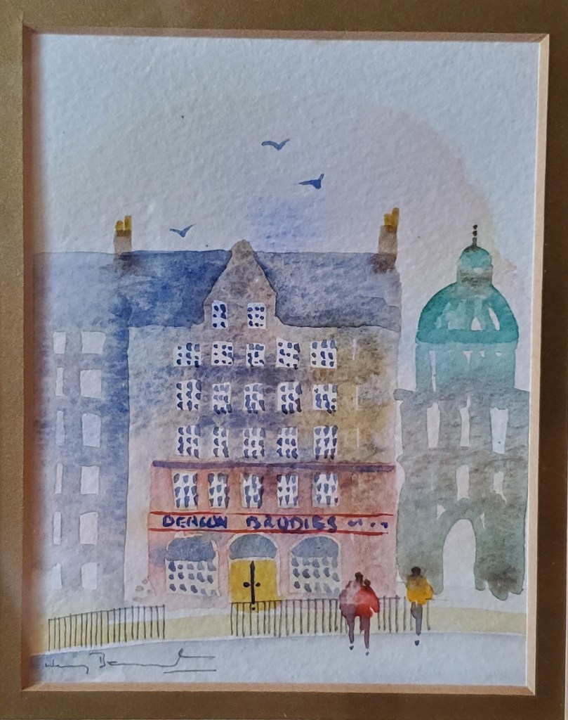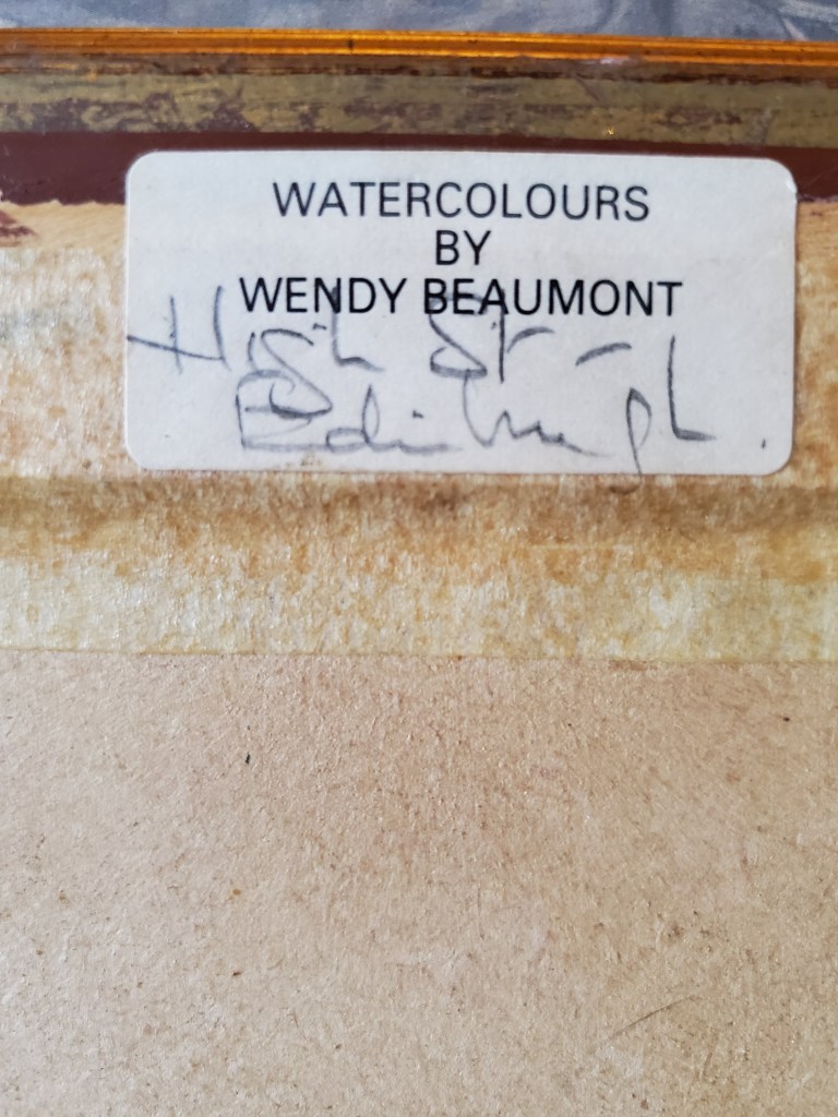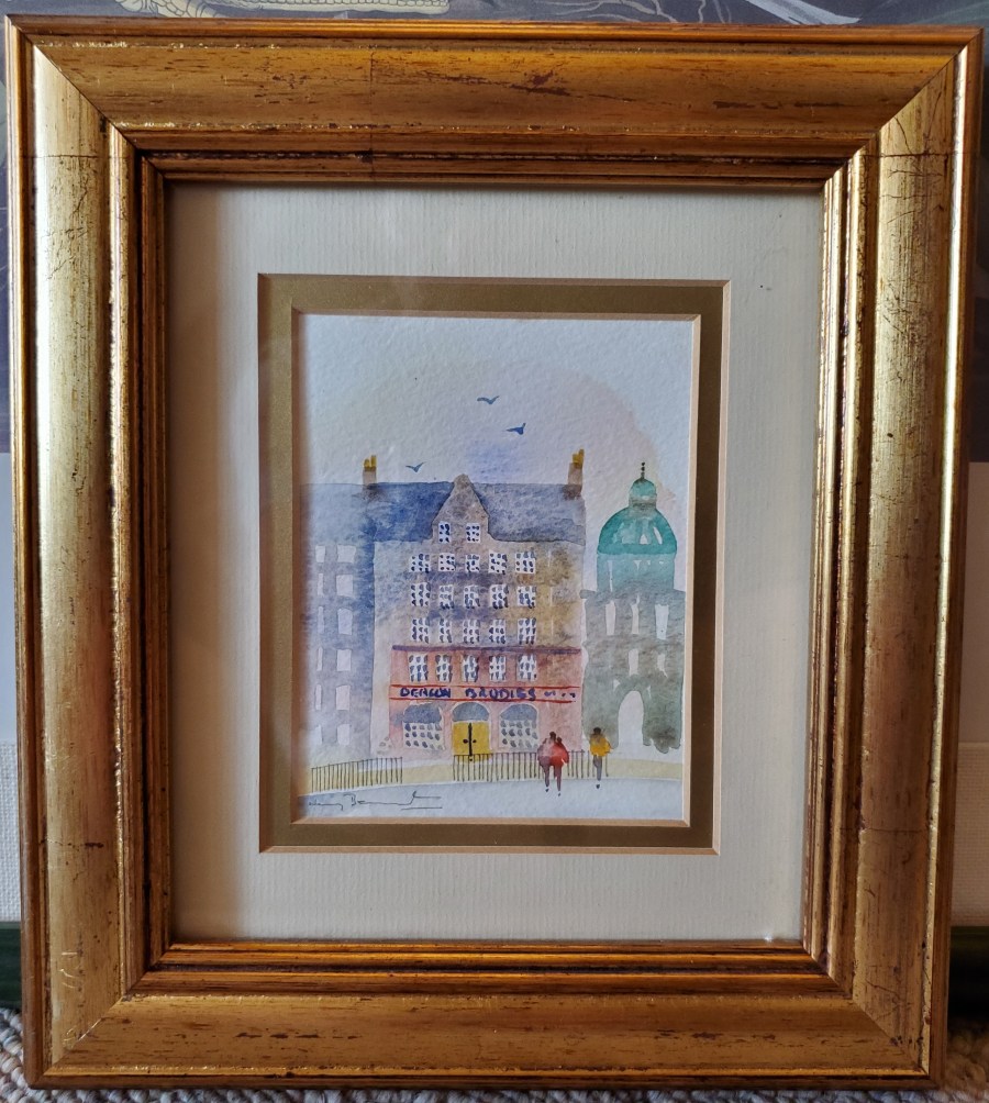 Church and School by Wendy Beaumont, signed Framed Watercolor of church and school on High Street in Edinburgh. Signed. 8″ W x 9″ H. Asking $50 Price is for local pick-up only. Shipping is extra and will be figured upon request. See below for contact details. Click here to return to where you were on the “Items for Sale” page. Clicking the back button will put you at the top of the page, while Clicking this button will return you to where you left off. Share this: Click to email a link to a friend (Opens in new window) Email Click to share on WhatsApp (Opens in new window) WhatsApp More Click to share on Facebook (Opens in new window) Facebook Click to share on X (Opens in new window) X Click to share on LinkedIn (Opens in new window) LinkedIn Click to share on Reddit (Opens in new window) Reddit Click to share on Tumblr (Opens in new window) Tumblr Click to share on Pinterest (Opens in new window) Pinterest Click to share on Pocket (Opens in new window) Pocket Click to share on Telegram (Opens in new window) Telegram Like Loading...