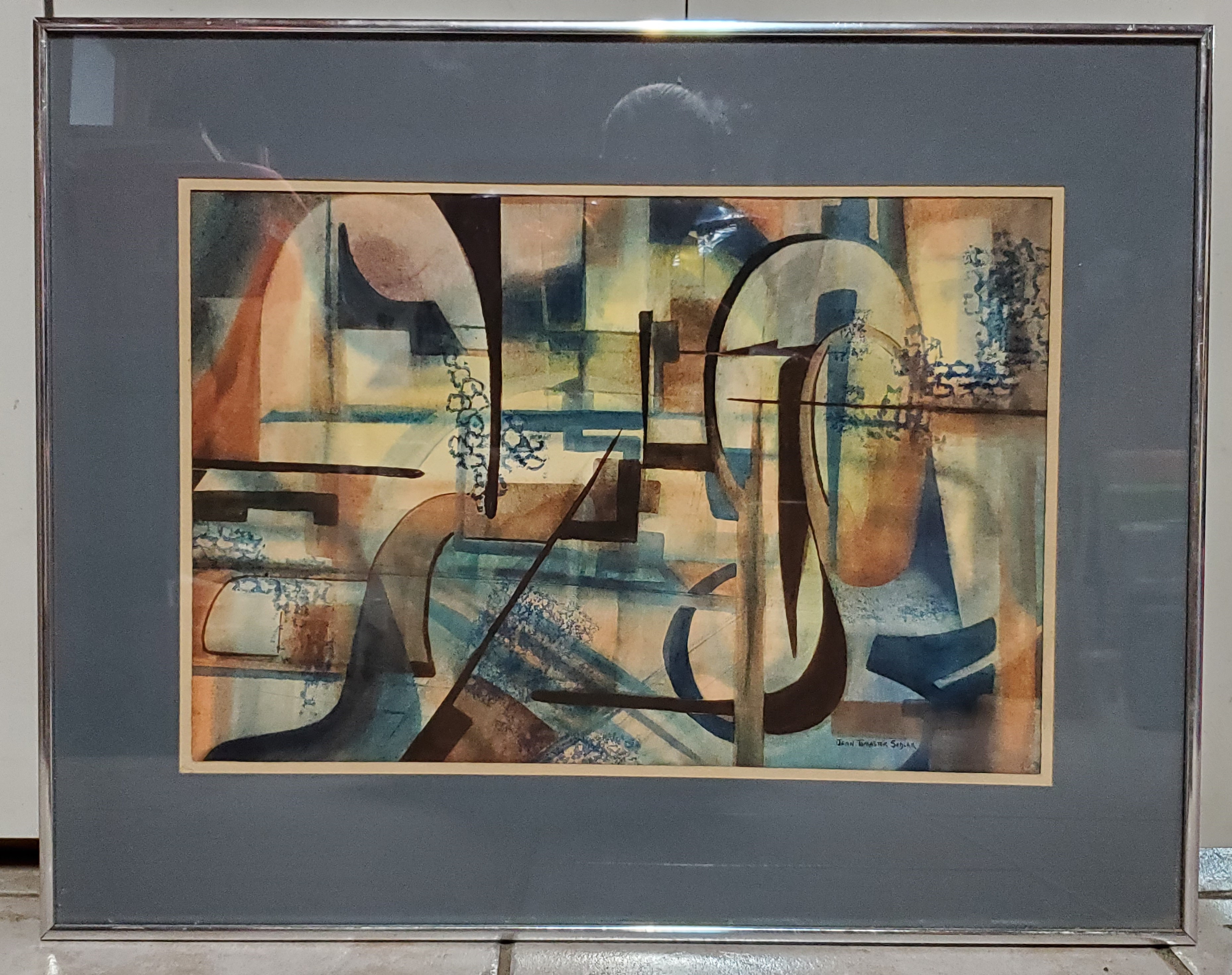 Abstract by Jean Tomastek Sedlak, Signed. 28 1/4″ W x 22 1/4 H. Frame color is silver.
