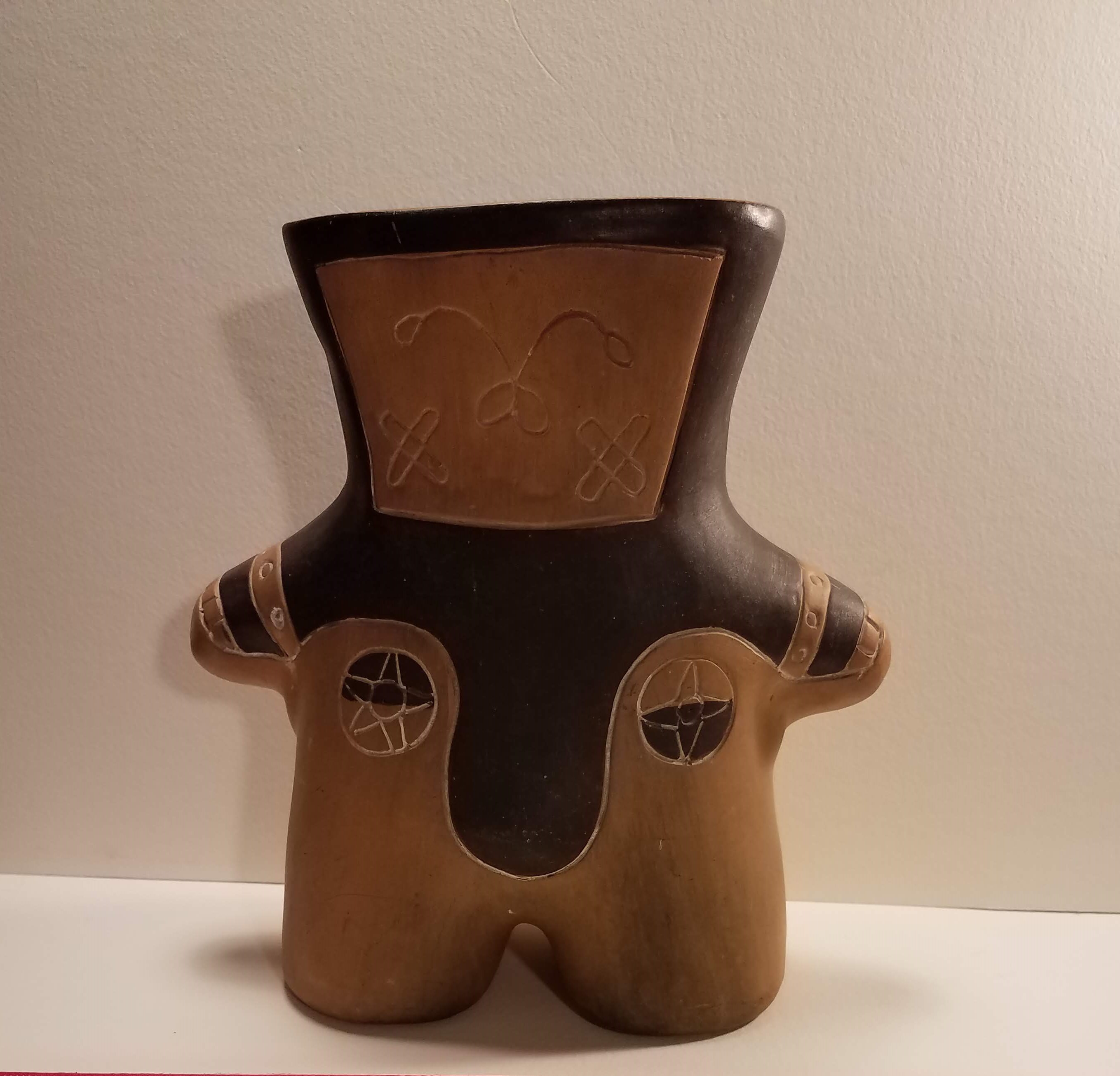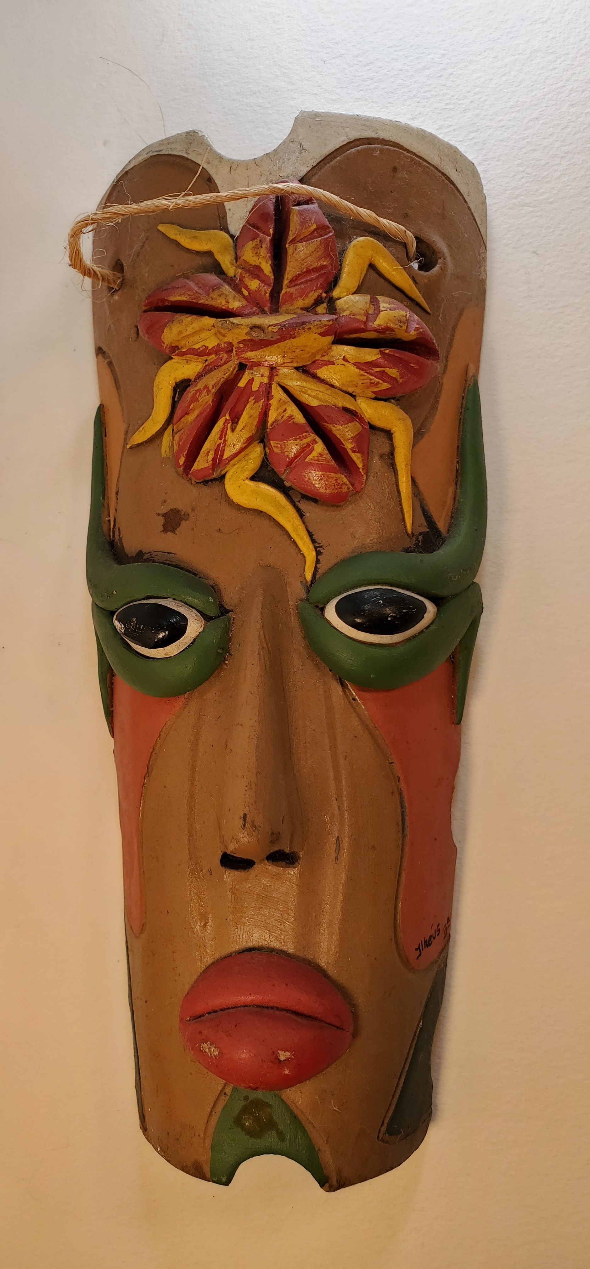 Abstract by Native American Artist Oscar Howe, Signed. Wyld Gallery calls it “Ritual Figure.” 23″ W x 32″ H. Frame is a dark yellow wood.