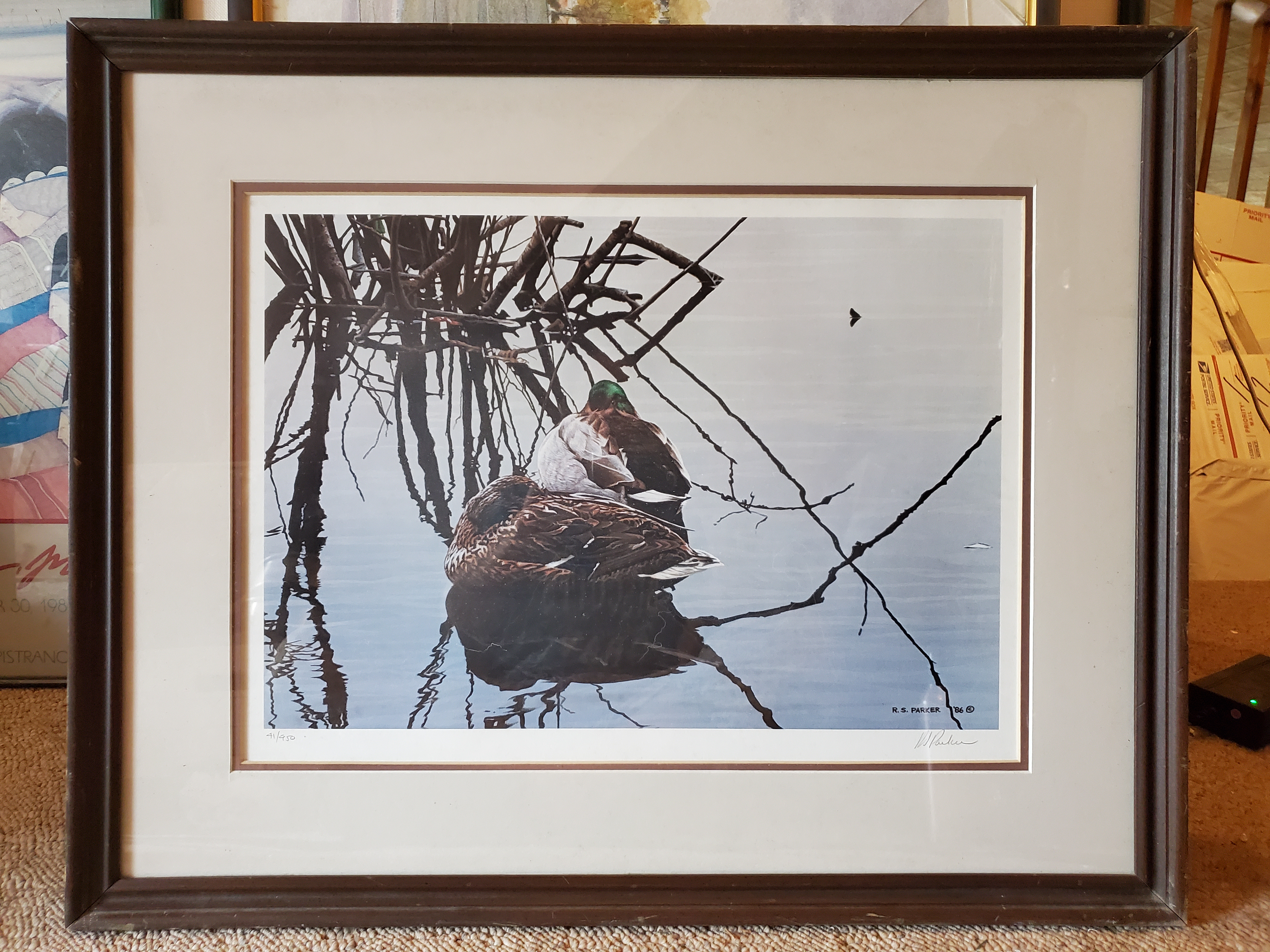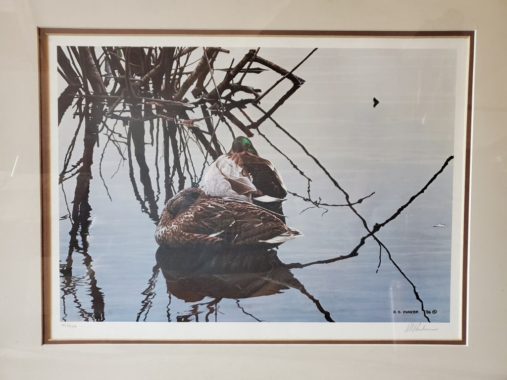 “Still Water Mallards” by Ron Parker, Signed Signed print 41/950. Framed. 27 1/4″ W x 22″ H. Asking $80 Price is for local pick-up only. Shipping is extra and will be figured upon request. See below for contact details. Click here to return to where you were on the “Items for Sale” page. Clicking the back button will put you at the top of the page, while Clicking this button will return you to where you left off. Share this: Click to email a link to a friend (Opens in new window) Email Click to share on WhatsApp (Opens in new window) WhatsApp More Click to share on Facebook (Opens in new window) Facebook Click to share on X (Opens in new window) X Click to share on LinkedIn (Opens in new window) LinkedIn Click to share on Reddit (Opens in new window) Reddit Click to share on Tumblr (Opens in new window) Tumblr Click to share on Pinterest (Opens in new window) Pinterest Click to share on Pocket (Opens in new window) Pocket Click to share on Telegram (Opens in new window) Telegram Like Loading...